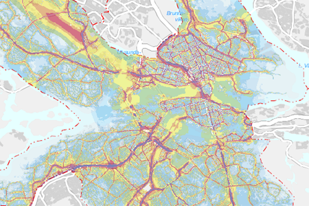 Stockholms trafikbullerkarta har utvecklats för att vara lättillgänglig och användbar. Kartan finns tillgänglig som traditionell 2D-karta och som 3D-karta där även ljudnivå vid fasad går att utläsa.