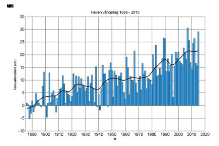 Den stigande havsnivån märks redan nu. Enligt IPCC var den genomsnittliga havsnivåhöjningen 3,7 mm per år för perioden 2006-2018. I Stockholm är den årliga drygt 5 mm, vilket innebär att den relativa havsnivån fortfarande sjunker hos oss.