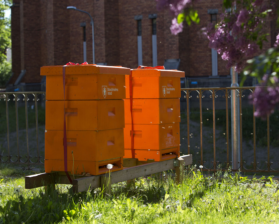 Vid den så kallade Kontorsvillan i Norra Djurgårdsstaden har Östermalms stadsdelsförvaltning tillsammans med företaget Bee Urban placerat ut två bikupor. Kuporna förser grönområden inom en radie av två till tre kilometer med honungsbin.