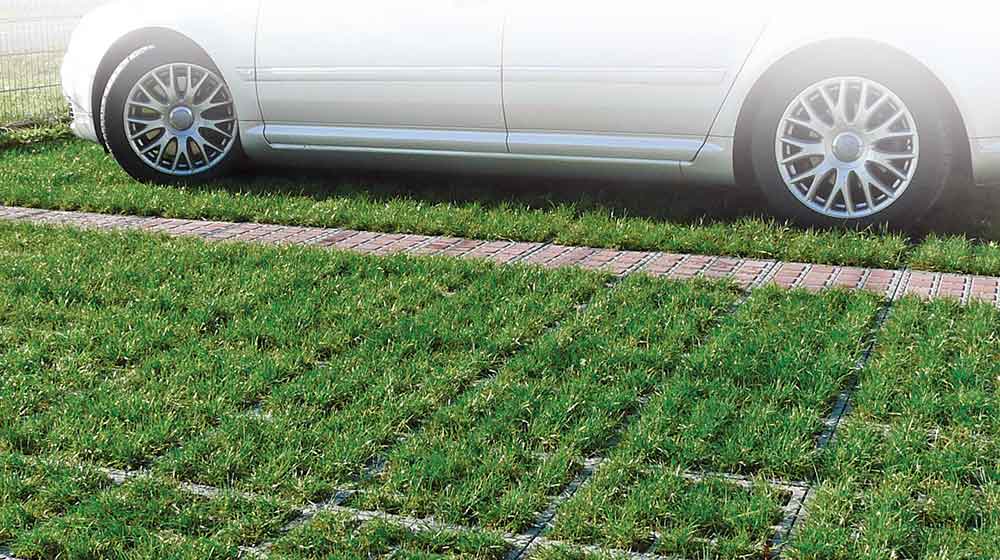 Där biltrafik passerar kan armerat gräs även få en dubbel funktion såsom psykologisk hastighetsbesgänsning...
