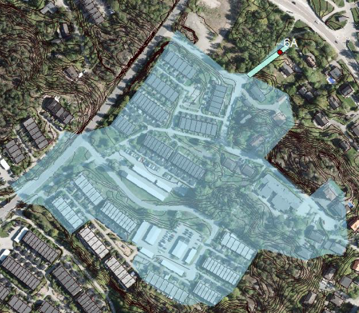 Området vars avrinnande dagvatten kan ledas till magasinet består av bostadsområden samt delar av Utsäljevägen. En vidare geoteknisk undersökning behöver utföras för att undersöka om bergschakt kan behövas.
