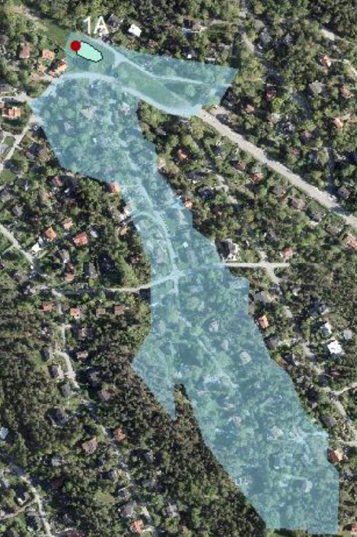 Intill platsen finns en lekpark som man behöver ta hänsyn till vid utformning och placering av dammen. Hur den faktiska avrinningen inom området sker behöver utredas närmare innan åtgärden tas vidare. Sker naturlig infiltration i området är detta ett bra alternativ för hantering av dagvatten och att anlägga en damm kan då bli oekonomiskt. Reningseffekten i dammen uppskattas till 1,3 kilo fosfor/år.